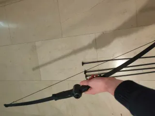 Arco de juguete negro con flechas