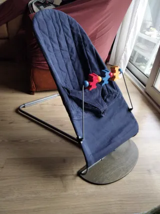 Hamaquita de la marca Babybjörn en color azul, con un divertido juguete. - Estructura metálica. - Tejido reversible - Juguete de colores