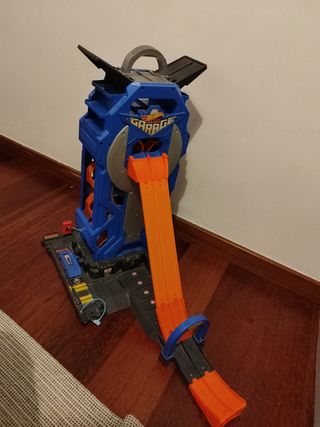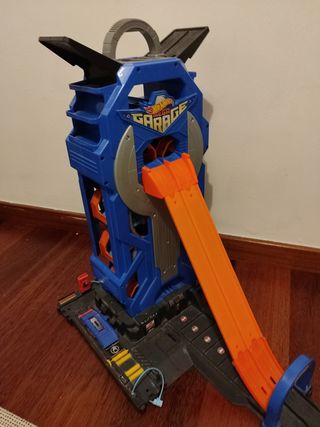 Garaje coche hotwheels. En muy buen estado. Gran capacidad para coches Hot wheels. Muy resistente. Se puede incluir dos cajas de pistas, para hacer circuitos y loopings