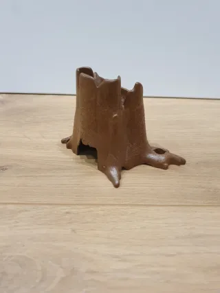 Pieza de Playmobil con forma de tronco de árbol. - Color marrón. - Diseño detallado de corteza y raíces.