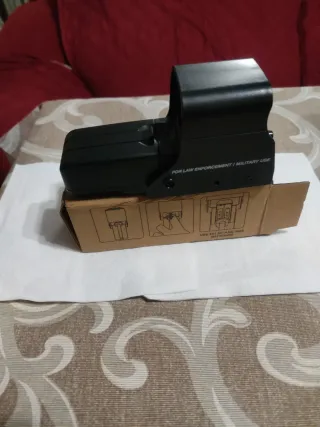 Lanzador de juguete tipo Laser Scope con diseño simulado. - Incluye un botón Switch para su activación. - Presenta iconos gráficos que sugieren diferentes modos de juego o funciones.