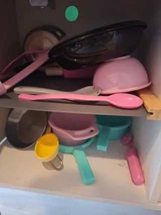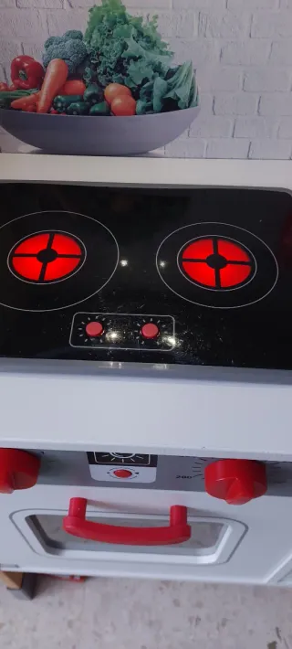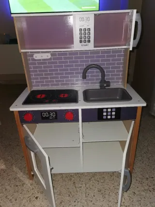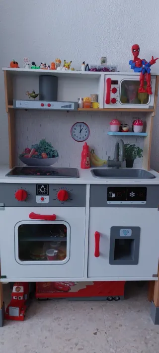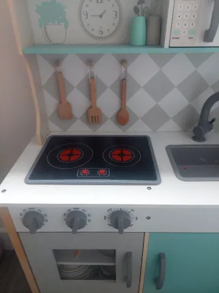 Se vende cocina de juguete en buen estado. - Diseño moderno y colorido. - Incluye algunos accesorios. - Ideal para el desarrollo de la imaginación. -Funcionan los fuegos y la campana, tienen luz y sonido.