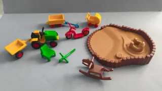 PRECIO DEL LOTE COMPLETO 7€. Playmobil lote vintage descatalogado primera época juguetes para niños arenero tractor carrito de bebe triciclo balancín caballito silla carrillo de mano