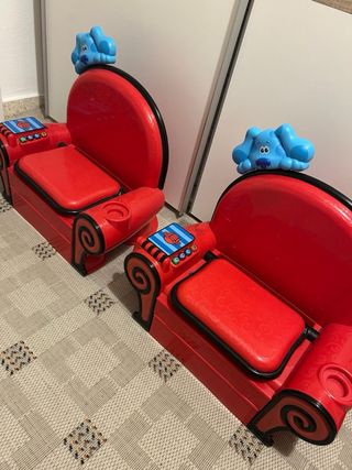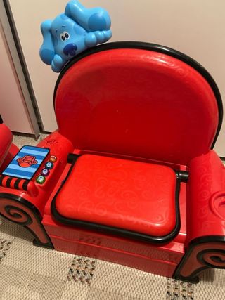 Divertido sillón de juguete de color rojo, inspirado en Blue's Clues. - Diseño llamativo y colorido. - Asiento baúl - Detalles interactivos en el brazo. -Precio de los 2