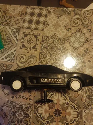 Juguete vintage del coche de policía Cosmocop, de los años 80 o 90. Un artículo de colección para los amantes de los coches de policía. - Diseño deportivo en color negro. - Inscripción COSMOCOP TO PROTECT AND TO SERVE en el lateral.