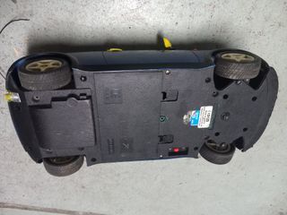 Mini Cooper de la marca Dickie Toys en color azul. Un coche radio control bastante usado y jugado pero que aun funcionaba cuando se guardó hace unos años. No incluye ni batería ni cargador porque ya no los tengo. Comprado en las navidades de 2002, escala 1/15 - Modelo Mini Cooper. - Color azul con techo blanco. - Ruedas doradas.