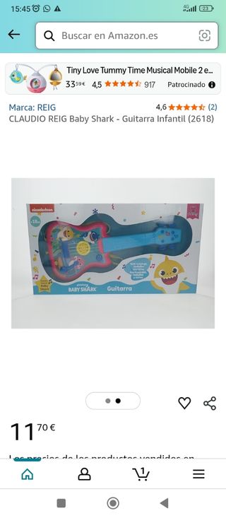 Guitarra infantil con la canción de Baby shark. Como nueva