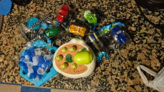 Regalo juguetes con cualquier compra de mi perfil. Lote variado de juguetes para niños, ideal para horas de diversión. - Juego de la rana con personajes. - Varios coches de juguete de diferentes colores. - Bloques de construcción en azul y blanco. - Piezas de juego adicionales.