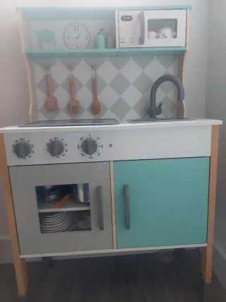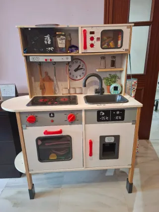 Divertida cocina de juguete de madera, ideal para los más pequeños. - Incluye accesorios de cocina. - Diseño colorido y atractivo. - Ideal para fomentar el juego creativo.