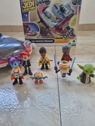 Set de figuras y vehículos de Star Wars: Young Jedi Adventures. Incluye personajes y naves. - Figuras de personajes. - Vehículos temáticos. - Inspirado en la serie. - Ideal para coleccionistas y fans.