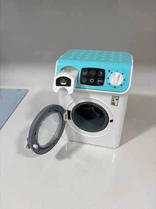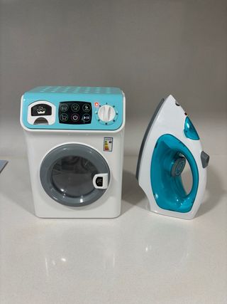 Set de lavadora y plancha de juguete, ideal para que los más pequeños jueguen a las tareas del hogar. Funciona perfectamente. - Con luces y sonido de verdad. - Lavadora con puerta frontal. - Plancha con diseño ergonómico.