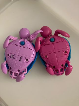 Set de juguetes para bebé con temática de tortuga. - Tortuga principal con caparazón de colores y formas (Funciona a pilas). - Tortuga pequeña con caparazón rojo. - Engranajes de colores: morado, azul, verde, amarillo y rojo.
