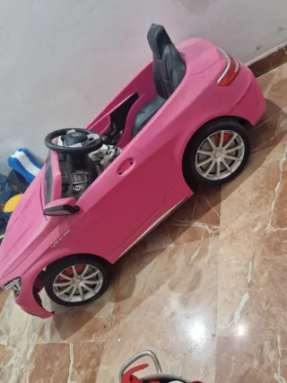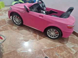 Coche de juguete a batería con diseño deportivo. - Color rosa vibrante. - Detalles de Mercedes-Benz. - Asiento cómodo. +Radio Tiene desgaste simplemente