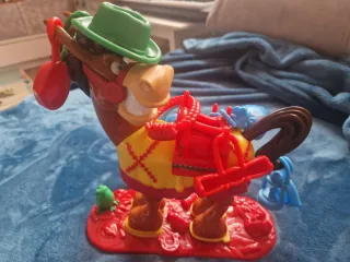 Divertido juego de mesa Tozudo con un simpático caballo. - Figura de caballo de plástico. - Base de juego roja. - Accesorios de colores. Mirar perfil hago lotes.