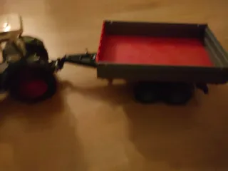 Juguete de tractor con pala frontal. - Diseño detallado en color verde y blanco. - Ruedas grandes con detalles rojos. Remolque incluido Longitud total 65cm