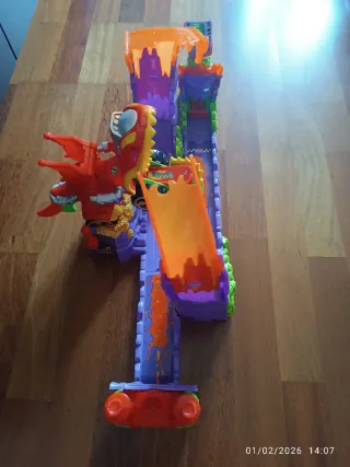 Circuito de carreras T-racers con temática de dragón. Ideal para horas de diversión. - Pista con loop. - Diseño colorido y llamativo.