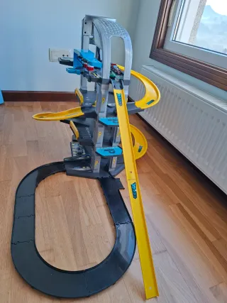 Parking de juguete de la marca Molto con cuatro plantas. Se entrega con los dos coches originales. - Incluye varias rampas y niveles. - Contiene ascensor, tren de lavado, estación de servicio, entre otros. - Funciona sin pilas.