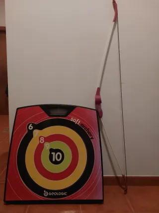 Juego de tiro al blanco para niños con diana y arco. La diana se puede abrir y colocar para que quedé de pié. No tengo las felchas, de ahí el precio tan bajo. Nuevo costó 50 euros