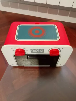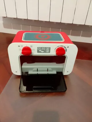 Horno de juguete para que los más pequeños disfruten de la cocina. - Diseño en color blanco y rojo. - Encimera con círculos simulando fogones. - Puerta abatible con asa gris. - Pantalla digital con botones.