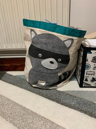 Ideal para guardar juguetes u otros objetos. El precio es por unidad. Son amplios. - Material de fieltro y tela. - Estampado de zorro. - Borde superior gris.