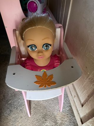 Bonito tocador de juguete para muñecas, con el nombre Nancy en la parte superior. Incluye una silla a juego. - Diseño blanco con detalles rosas. - Espejo central. - Estantes para accesorios. - Cajón. - Silla rosa. - muchas accesorios de juguete como peines, plancha para el pelo, cremitas, diamantes, pintalabios etc. Sin caja Silla y tocador desmontables. Prefiero venta en mano en Vigo, pero puedo hacer envíos. Cualquier duda pregunta sin compromiso.