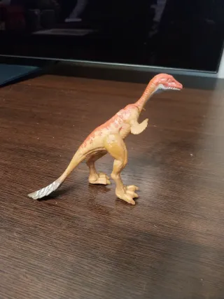 Figura de dinosaurio de juguete, ideal para coleccionistas o para jugar. - Diseño detallado. - Colores naranja y blanco.