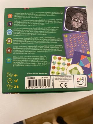 Juego de mesa para mejorar reflejos y agudeza visual. - Incluye tablero de juego. - Contiene fichas y cartas. - Ideal para jugar en familia.