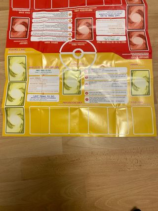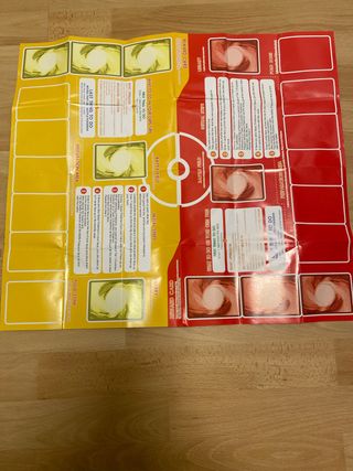 Tablero de juego para el juego de cartas Pokémon. Incluye zonas para preparación, campo de batalla y cartas de recompensa. - Diseño a dos caras con temática Pokémon. - Instrucciones de juego impresas en el tablero.