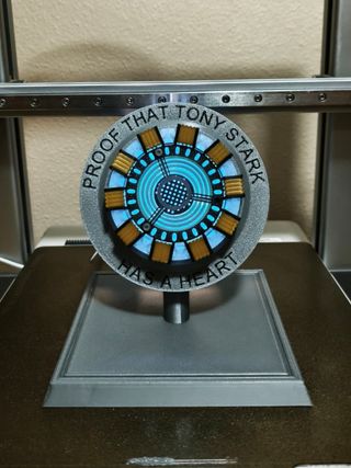 Réplica del Reactor ARC de Iron Man, con diseño en 3D. Un objeto decorativo con un diseño inspirado en la pelicula. - Lampara que cuenta con luz le RGB con mando incluido - Base de soporte incluida. - Inscripción 'PROOF THAT TONY STARK HAS A HEART'. Su tamaño ocupa las dimensiones de un cubo de 15 cm.