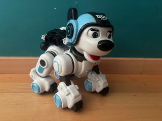 Descripción en las fotos, precio original 60€, utilizado 1 vez, se lo trajeron en navidad y no le han hecho ni caso, solo 5 minutos al sacarlo de la caja. Lo dejo con pilas en el mando y bateria cargada. Solo le falta la caja. Divertido perro robot con temática de policía. - Diseño futurista en blanco y azul. - Detalles de policía en el casco y cuerpo. - Aspecto de robot articulado.