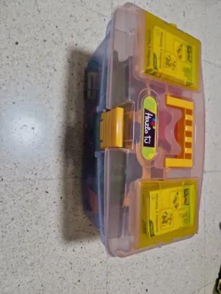 Maletín de juguete con forma de camión, ideal para organizar y transportar pequeños objetos. Incluye compartimentos y accesorios. - Diseño tipo camión. - Compartimentos para organizar. - Incluye accesorios de juego.