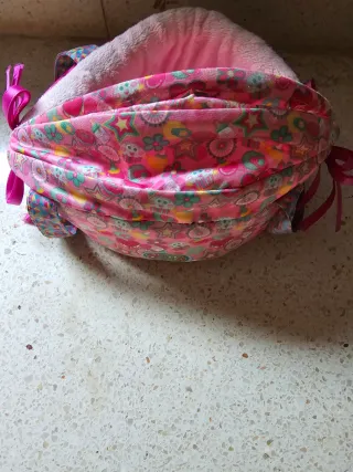 Preciosa cuna para muñecas, ideal para las Ksi-Meritos. Es de color rosa y tiene un diseño muy bonito. - Cuna de tela rosa con estampado de cuadros. - Incluye un pequeño colchón h una almohada - Asa para facilitar su transporte. - Perfecto estado.