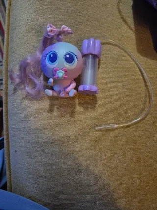 Se vende Ksi-Merito Neonato, una encantadora muñeca con accesorios. La muñeca está en perfecto estado. - Incluye la muñeca Ksi-Merito Neonato y un biberón. - La muñeca es de color rosa y tiene el pelo morado. - Los accesorios son de color morado y plateado.