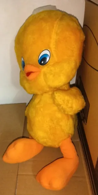 Adorable peluche de pato de color amarillo brillante. Es suave y perfecto para abrazar. - Material de felpa. - Ojos azules y pico naranja. - Patas naranjas. Medida 40cm.