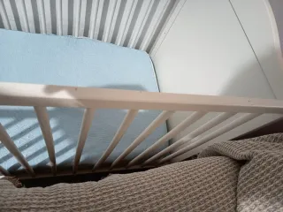 Cuna de bebé en buen estado, lista para su nuevo hogar. - Estructura de madera blanca. - Barreras de seguridad. - tiene algunos arañazos pero no sé aprecia
