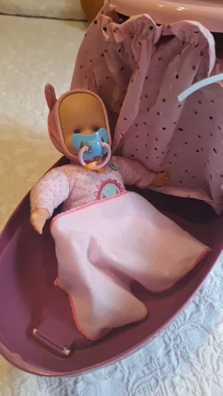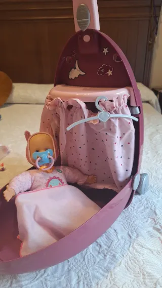 Maletín de juguete que se transforma en cuna y trona para muñecos. - Diseño en color rosa. - Incluye un perchero con forma de corazón. (Regalo muñeco nenuco)