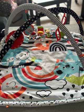 APENAS SE HA USADO. PRECIO TODO HACE 6 MESES: 50€ Gimnasio para bebés con divertidos sonajeros para pies y manos. Ideal para estimular el desarrollo del bebé. - Incluye 4 sonajeros: 2 para pies y 2 para manos. - Diseño colorido con animales y arcoíris. - Incluye varios colgantes para estimular el juego.