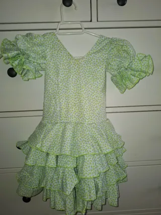 Precioso traje de flamenca para niña, con un estampado floral en tonos verdes y blancos. Incluye complementos. Traje de flamenca para niñas de 1-3 meses (55cm)