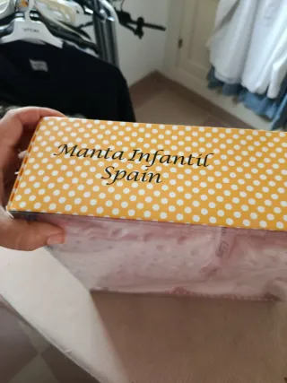 Conjunto de manta para bebé en color rosa, presentado sendback:68dd0b4d1c0c8 una caja. - Manta con relieve de topitos. - Cinta de satén con texto Happy Baby.