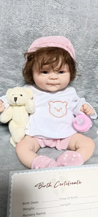 Muñeca Reborn con cuerpo completo de Silicona, nueva a estrenar. Mide 30cm. Viene biberón y certificado de nacimiento.