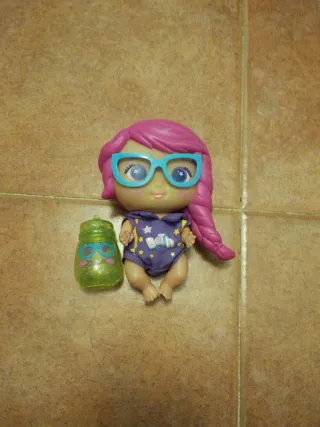Muñeca Bellies con su accesorio. - Muñeca con pelo rosa y gafas. - Incluye un accesorio verde brillante con forma de bote.