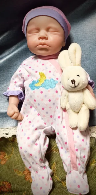 Muñeca Reborn con cuerpo completo de Silicona estirable, totalmente nueva a estrenar. Mide 28cm. Trae un conejito de peluche.