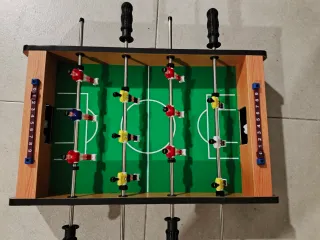 Divertido futbolín de mesa, perfecto para los más pequeños. Ideal para jugar en casa. - Diseño compacto y ligero. - Incluye dos equipos de jugadores. - Barras de metal resistentes.