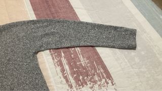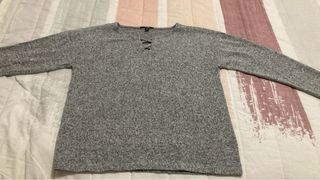 Camiseta gris de manga larga de la marca Kiabi. - Cuello con cordones. - Tejido suave y cómodo.