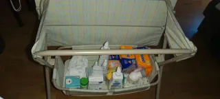 Cambiador de bebé plegable, ideal para tener todo a mano. - Estructura metálica. - Cesta organizadora de tela( plástico) PRODUCTOS NO INCLUIDOS
