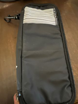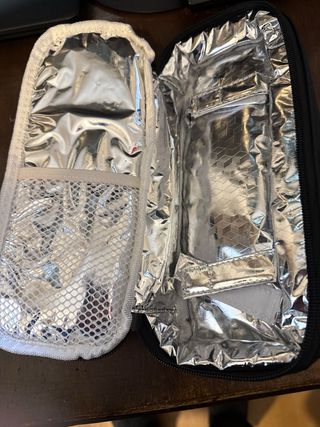 Práctica bolsa isotérmica para transportar tu bocadillo o comida. Mantiene la temperatura. - Diseño moderno con rayas y código de barras. - Cierre de cremallera. - Incluye mosquetón para colgar.