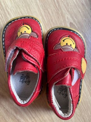 Adorable par de zapatos para bebé en color rojo. - Diseño con aplicación de mono. - Cierre de velcro. - Suela flexible.