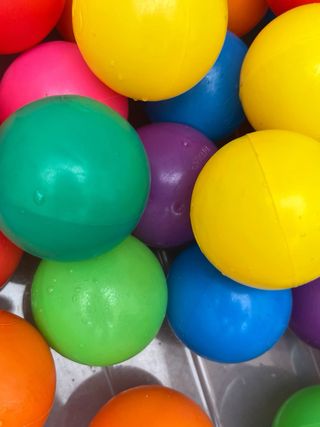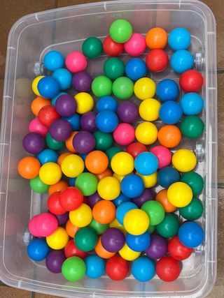 Conjunto de bolas de plástico de varios colores, perfectas para juegos o decoración. - Material: Plástico resistente. - Variedad de colores vivos.