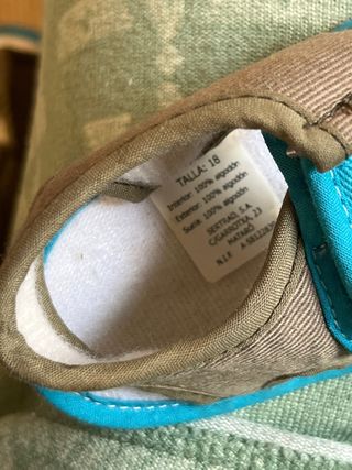 Xanclas de bebé en color marrón y azul. - Exterior de tela. - Interior de algodón. - Cierre de velcro.