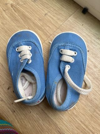 Preciosos zapatos de bebé en color azul, perfectos para los más pequeños. Son cómodos y fáciles de poner. - Material textil. - Cierre con cordones blancos. - Suela blanca. -Talla 18